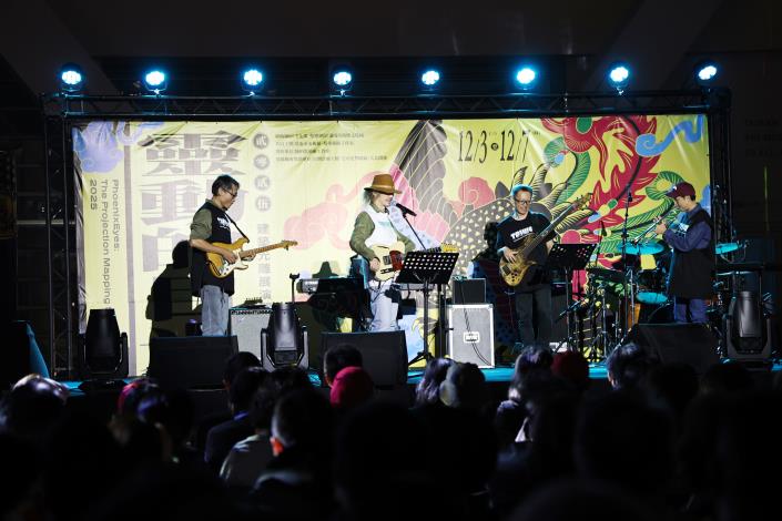 今日晚間 6 點半舉辦的光雕音樂會,以「站在這裡,這裡就是家」為主題,匯聚跨界卡司:金曲台語歌后李竺芯、饒舌教父大支以及朱頭皮爵士樂團聯合演出。朱頭皮也擔任主持人,用台語旁白串起音樂與光影的節奏,市議員沈震東、陳怡珍、朱正軒,李啟維出席,立委林俊憲服務處及各市議員服務處亦派代表到場共襄盛舉。