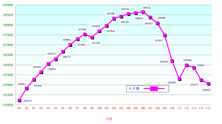 三、臺南市89年至115年人口數統計: